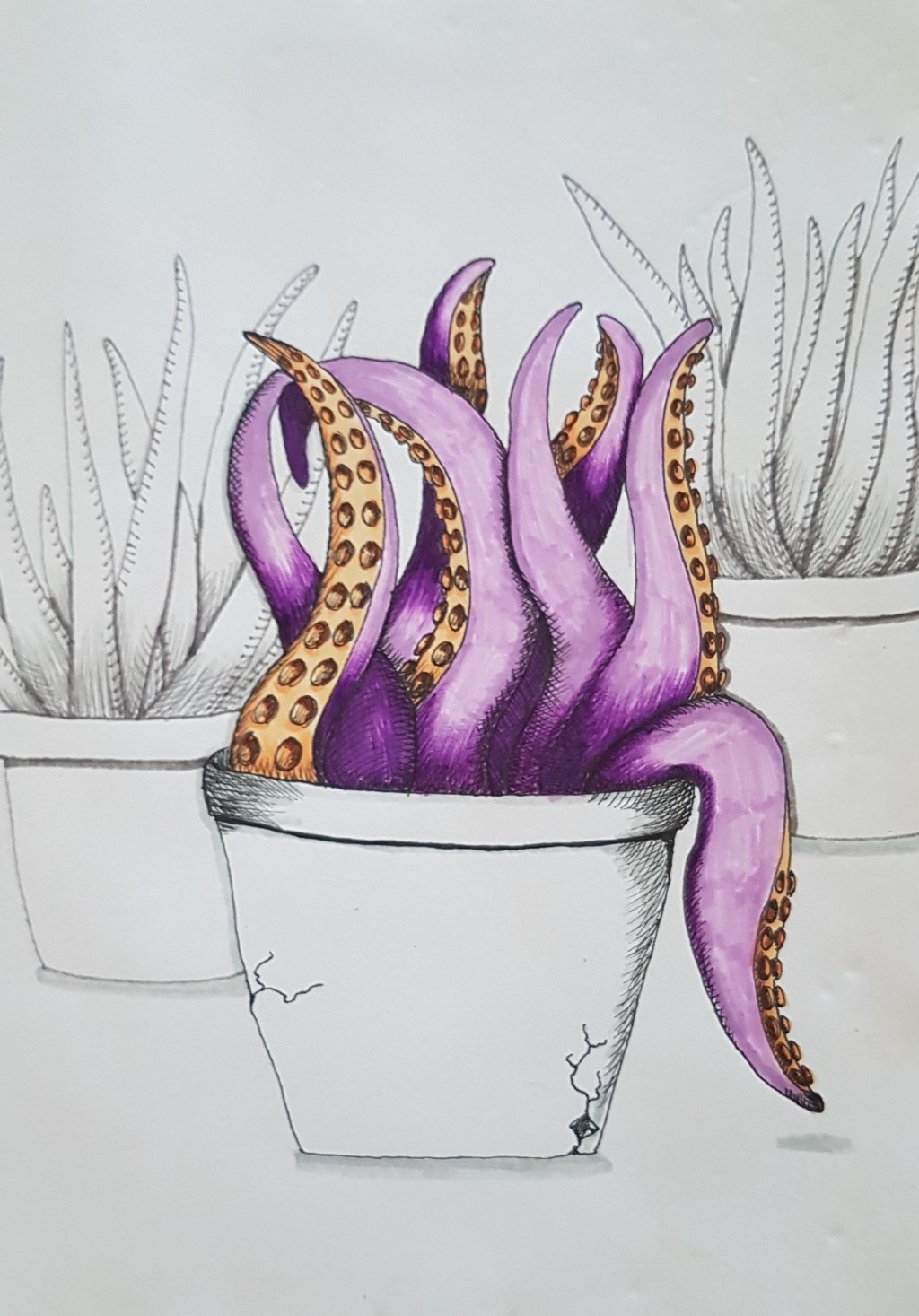 Awesome drawing! This sea monster, unlike his aloe friends, might need a lot of water though.