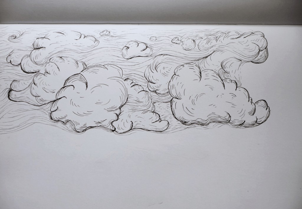 clouds, clouds rolling in, doodle, doodling, drawn, illustration, pen and ink, rolling in, sketchbook, whimsical