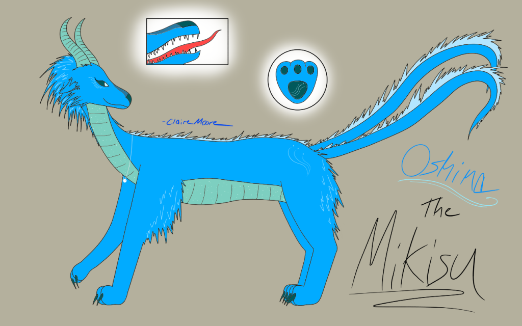 This is a digital drawing of a species I came up with. This is also my first attempt of making a base. I'm very pleased with how it turned out and I plan to only get better. Please do not use or claim the species as your own. I worked hard and all things I create are cherished and made with lots of care. Because I have a base, I'm open to color ideas. Please comment if there are any colors you would like to see on my Mikisu. Thank you!