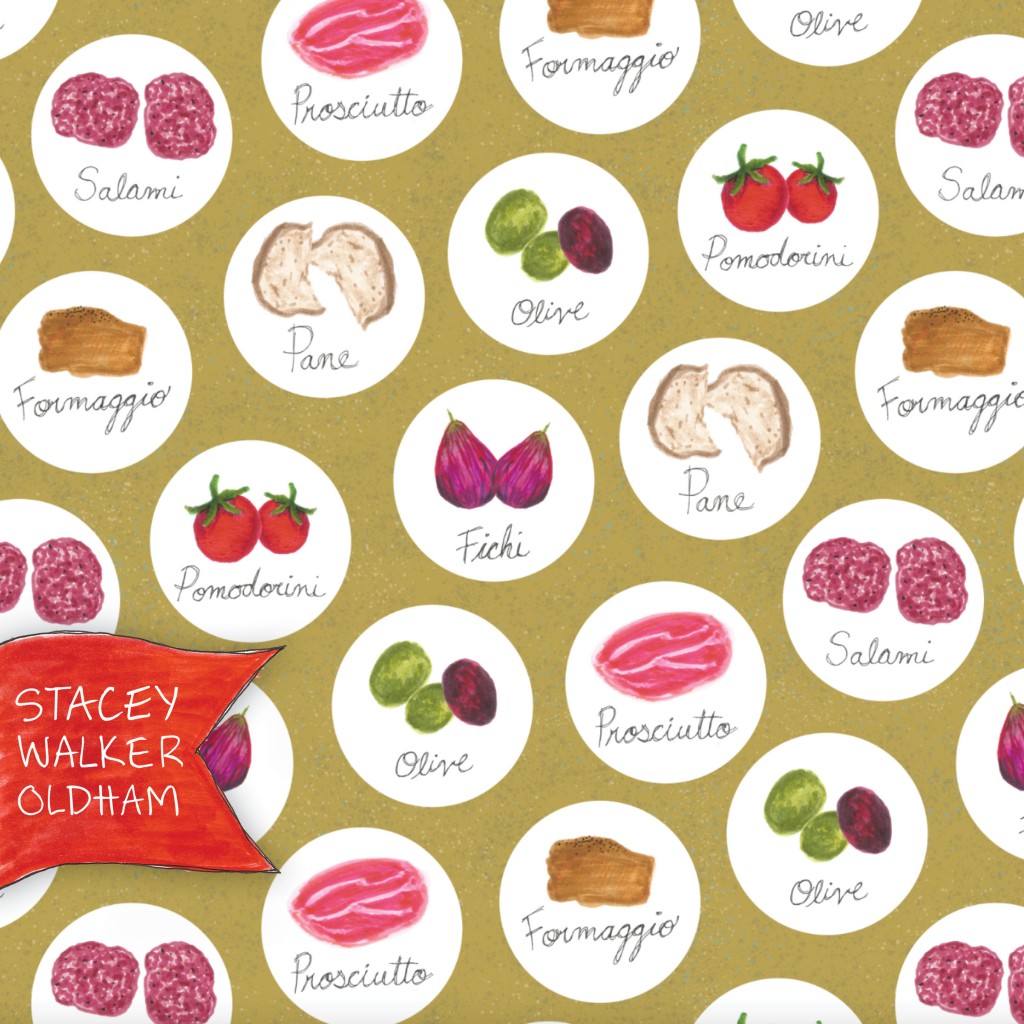 pattern of things you might find on a charcuterie plate - in Italian