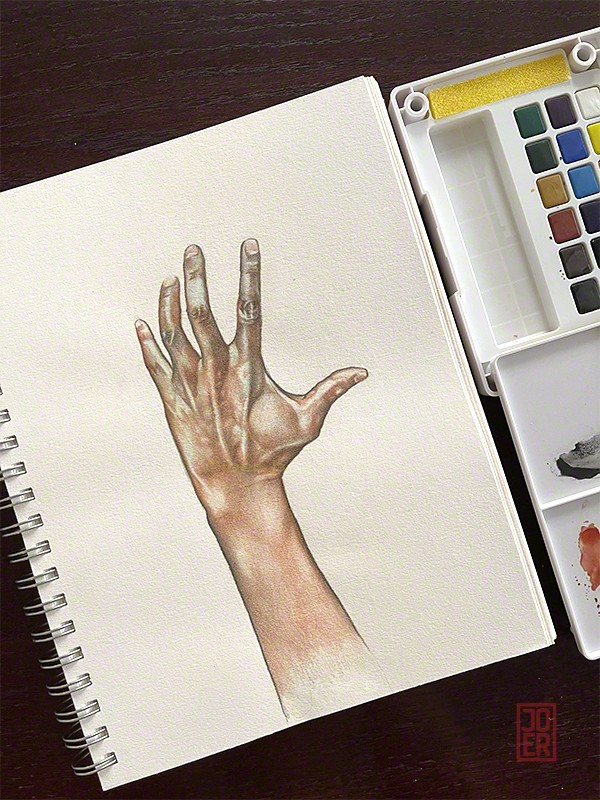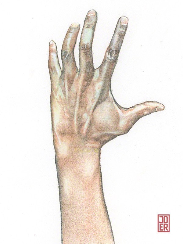 Drawing in a single direction instead of using back-and-forth movement alleviates some of the blotching that happens when using ballpoint pens. The back-and-forth method usually deposits the gunk that builds up on the tip of the ballpoint, smearing them in unexpected and unfortunate places on the drawing. When using the back-and-forth method, I usually have a napkin handy in order to clean the tip of the pen. Model: Meadhbh (Maeve)