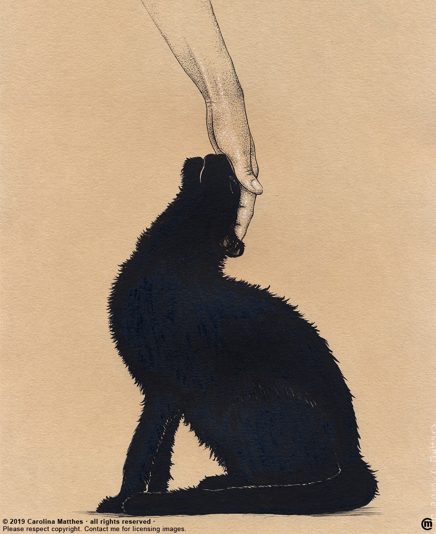artist, artwork, black cat, blackwhite, bohemian, cat, drawing, fluffy poppet, illustration, inkpen, inkspiration, inkwork, moggy, pen and ink, snuggle, traditional, trendy, unique