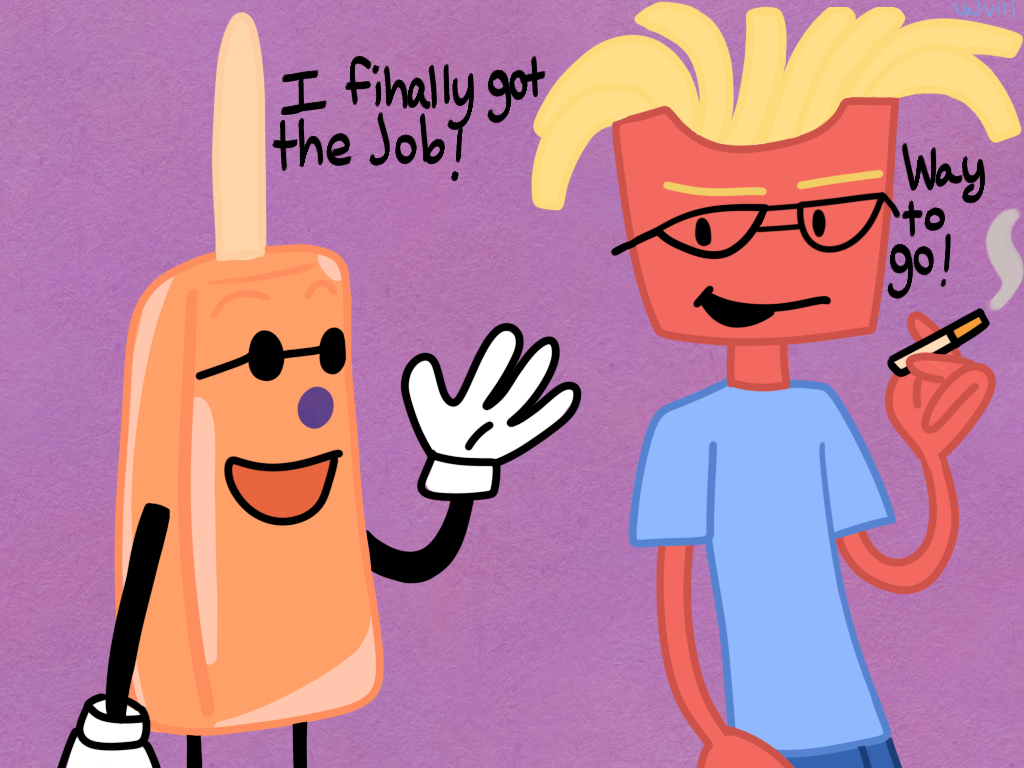 French fry guy and orange popsicle guy