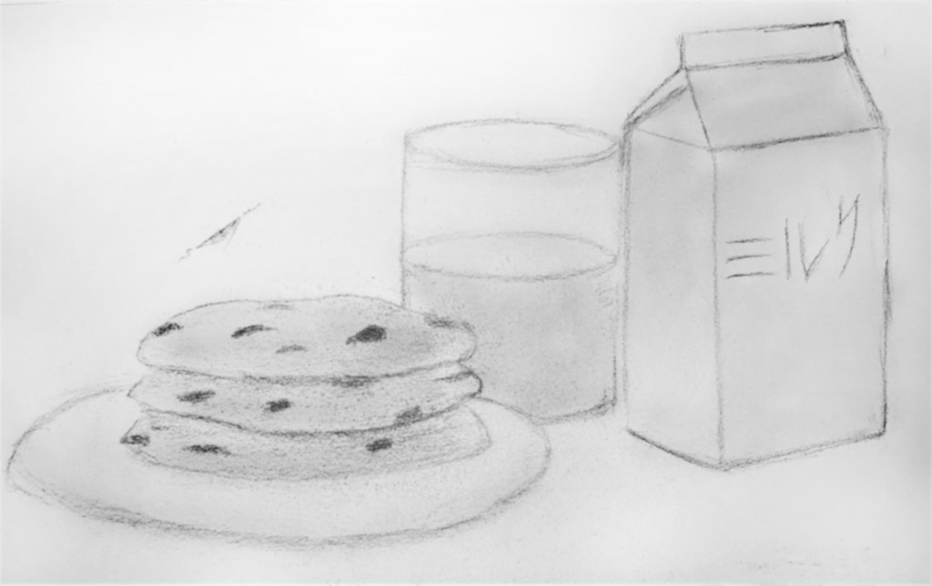 cookies, doodle, graphite, milk, sketch
