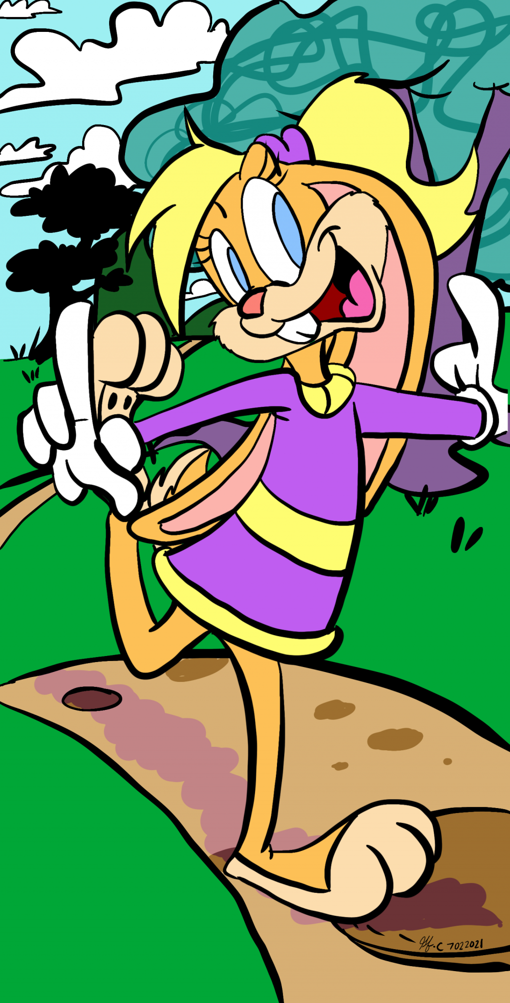 One of many doodles featuring Lola Bunny in her "Looney Tunes Show" design and personality with more hair in the back for a ponytail, and ears untied . Drawn in ibisPaint
