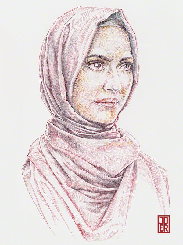 My third attempt at drawing Ellie in her black turtleneck. Ballpoint Pen, ink wash on Moleskine Sketchbook.