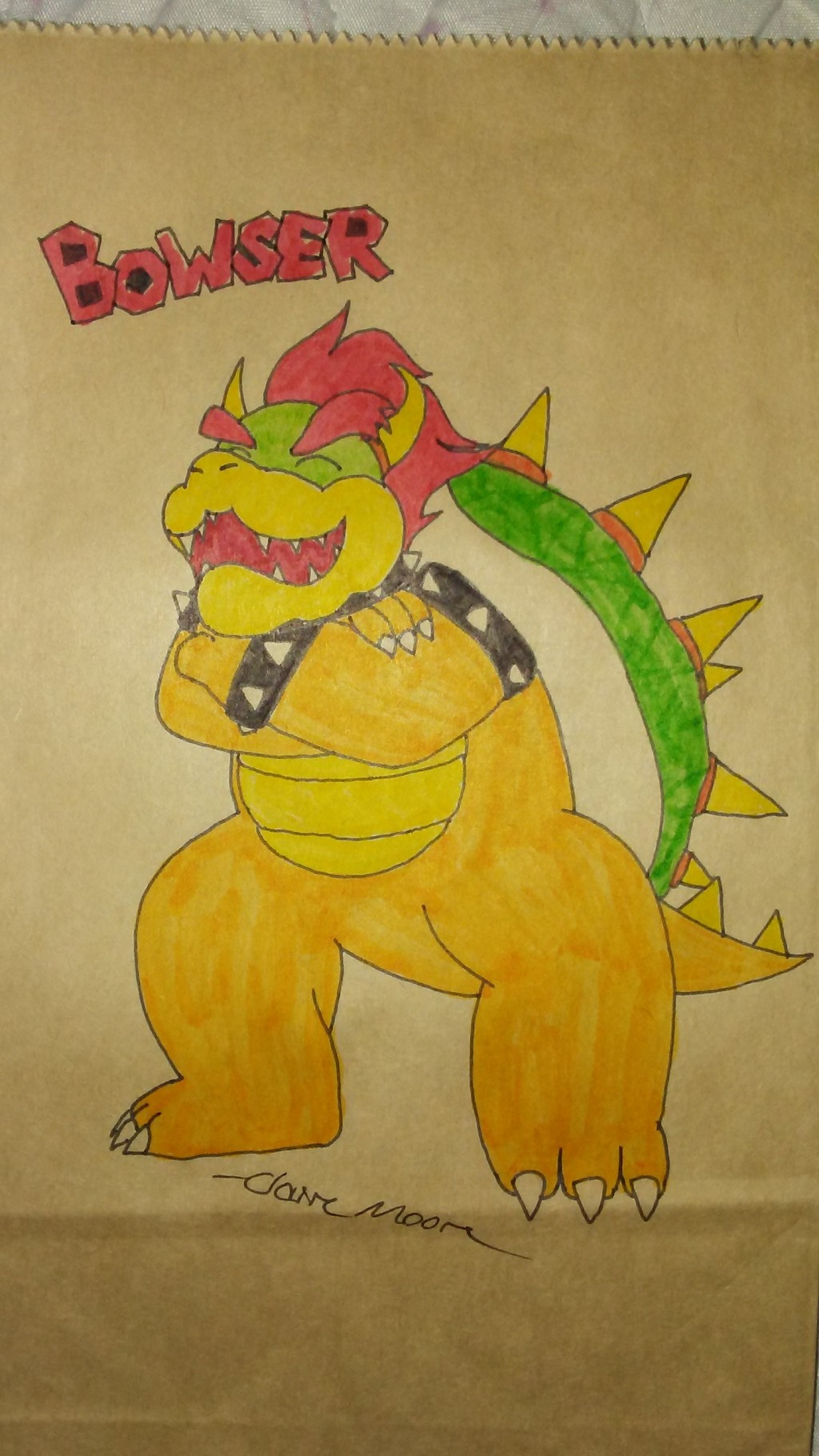 Can you believe this is my first time drawing Bowser? It's not perfect, but I love how it turned out for a first. I did this because my sister found this non-profit organization that makes lunch packages for hungry children. This organization is allowing people to send them decorated paper lunch bags for them to use. We're about to send our first batch and I'm so excited! I have the links if you want to join the fun!