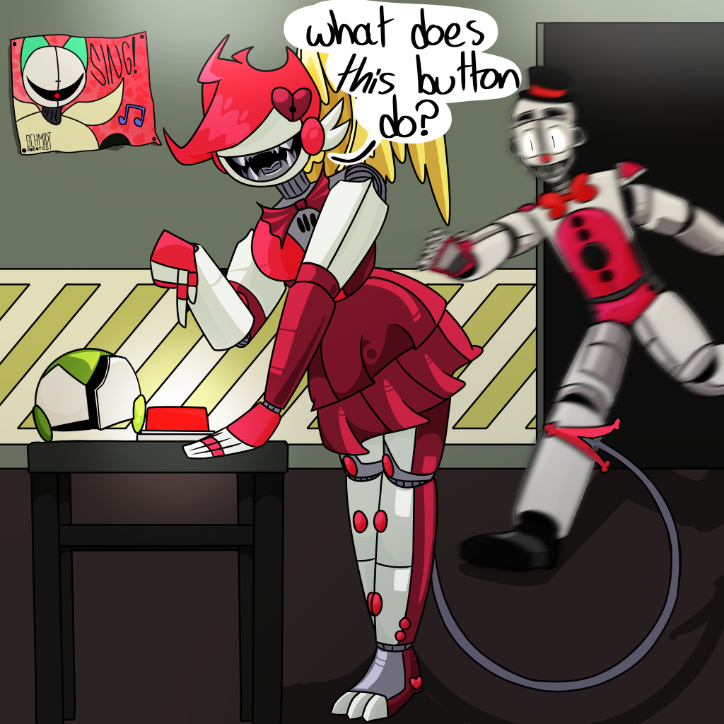 The purpose of the button is unknown, but Jester always freaks the hell out when it's around anybody, ever. This will be a recurring theme/event; or, I would like it to be. Drawn with FireAlpaca.