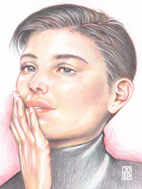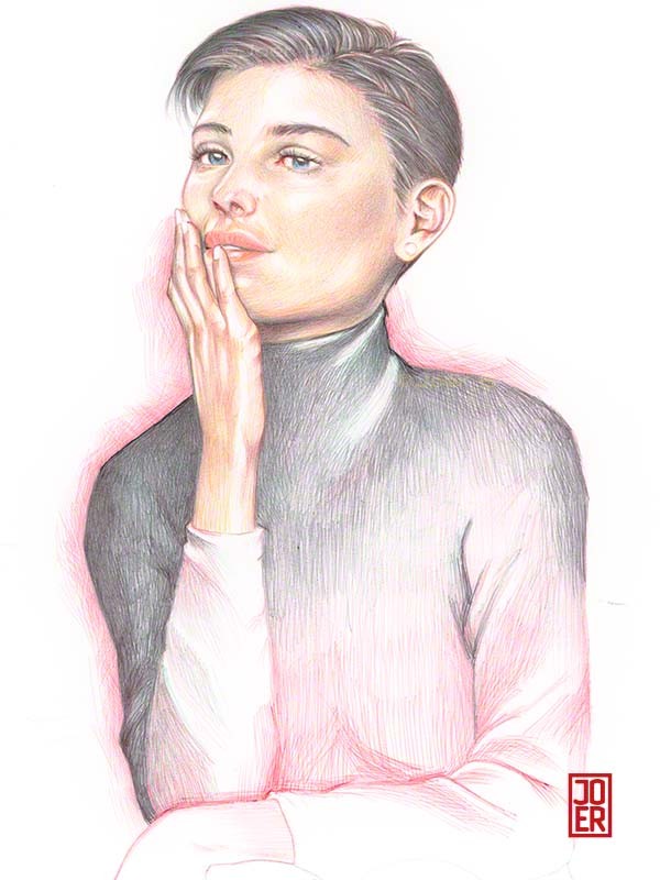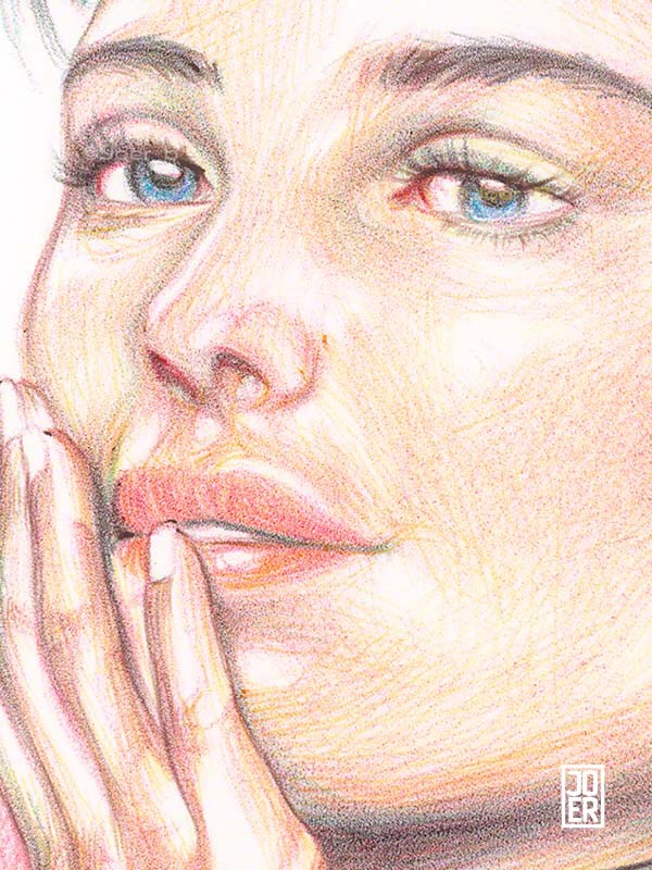 @Rayedrgn If you look at my previous posts (Meadhbh standing pose, The Question) I posted some in-progress shots. In the post ‘InstaCheck’ I included a shot with the cheap 10 colour ink pen I often use with these drawings. In some of the close-ups I’ve posted, you can see the layering of the red, green and yellow inks (detail shots of ‘Meadhbh Looking Away’). I now use relatively light pressure with the pen when drawing—different from the pressure I use for writing notes. I think ‘Fevered Dreams’ and the drawings I did of Natasha were the only ink drawings I did with a deliberate, heavy pressure (mostly because they were my earlier, experimenting phase). If you really want to see the very first successful colour ink drawing, look at my first post - ‘Headphone Girl.’ This drawing shows the deliberate mark-making of someone new to the technique. It also shows the how I always follow the forms with my line (the contours of the face, nose and eyes) - this is consistent whether I’m drawing with a Bic pen or a pencil or a brush with paint on it. Hope this helps.