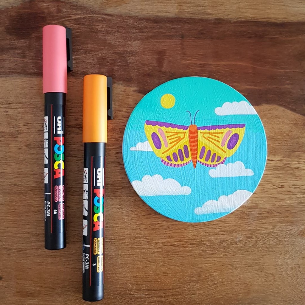 Painted again on a paintchip card with acrylics, poscapens and karinmarkers.