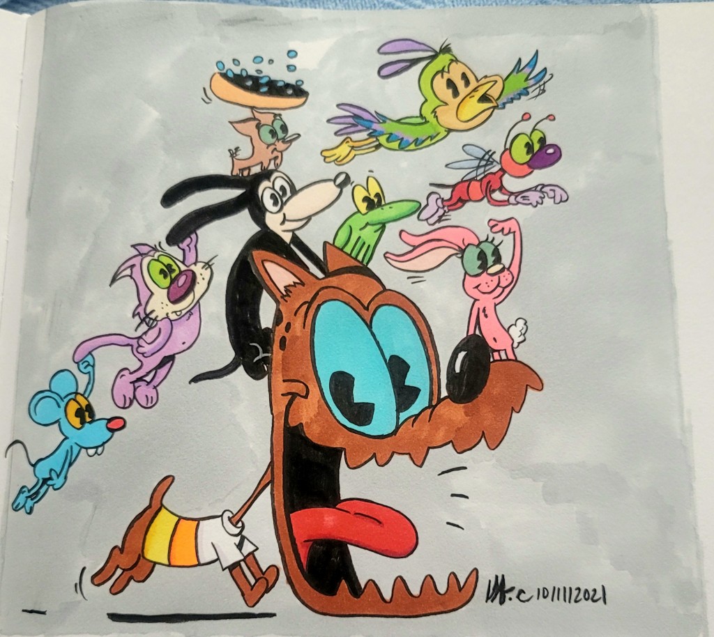 Quick, random Halloween themed doodle that features a bunch of wacky animals being carried by a candy corn shirt wearing dog. Well, not all of them. (the bird and bug're flying)