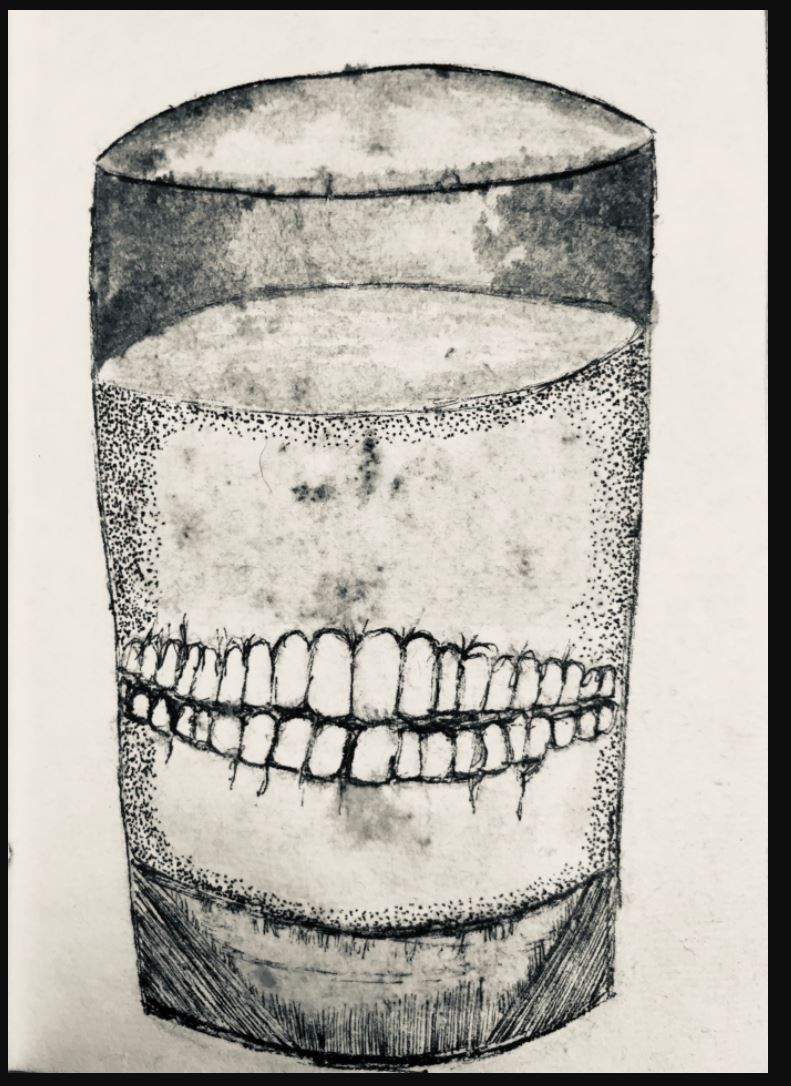 This drawing was an attempt at drawing something grotesque as well as a study of a side profile of a person. Alukah is a Hebrew word that means "horse-leech", a type of leech with many teeth that feeds on the throats of animals. Inspired by Jungi Ito's "Slug Girl" and "Leech Woman" from the film Puppet Master.