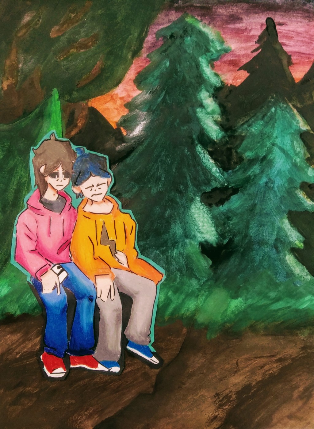 I kind of lied when I said there were only 3 versions of the Altitone animatronics. There are technically four, and these were the first two. They're stored in Jester's workshop. Unlike the V3 and V2 animatronics, the first two sets have red cheeks on the side of their faces that pop out, and contain cameras, instead of the cameras being in their mouth. This was changed, of course. Prototype Elizabeth has one of those police lights in their tail. I thought that would look cool. Jester thought so too, I assume, because he implimented it into Elizabeth. I imagine these guys roaming around in Jester's workshop as he works on them, to keep them from locking up, and all. Also, that is a real cupcake. It is molding on the inside. Can't wait for somebody to make THAT mistake. Drawn with FireAlpaca.