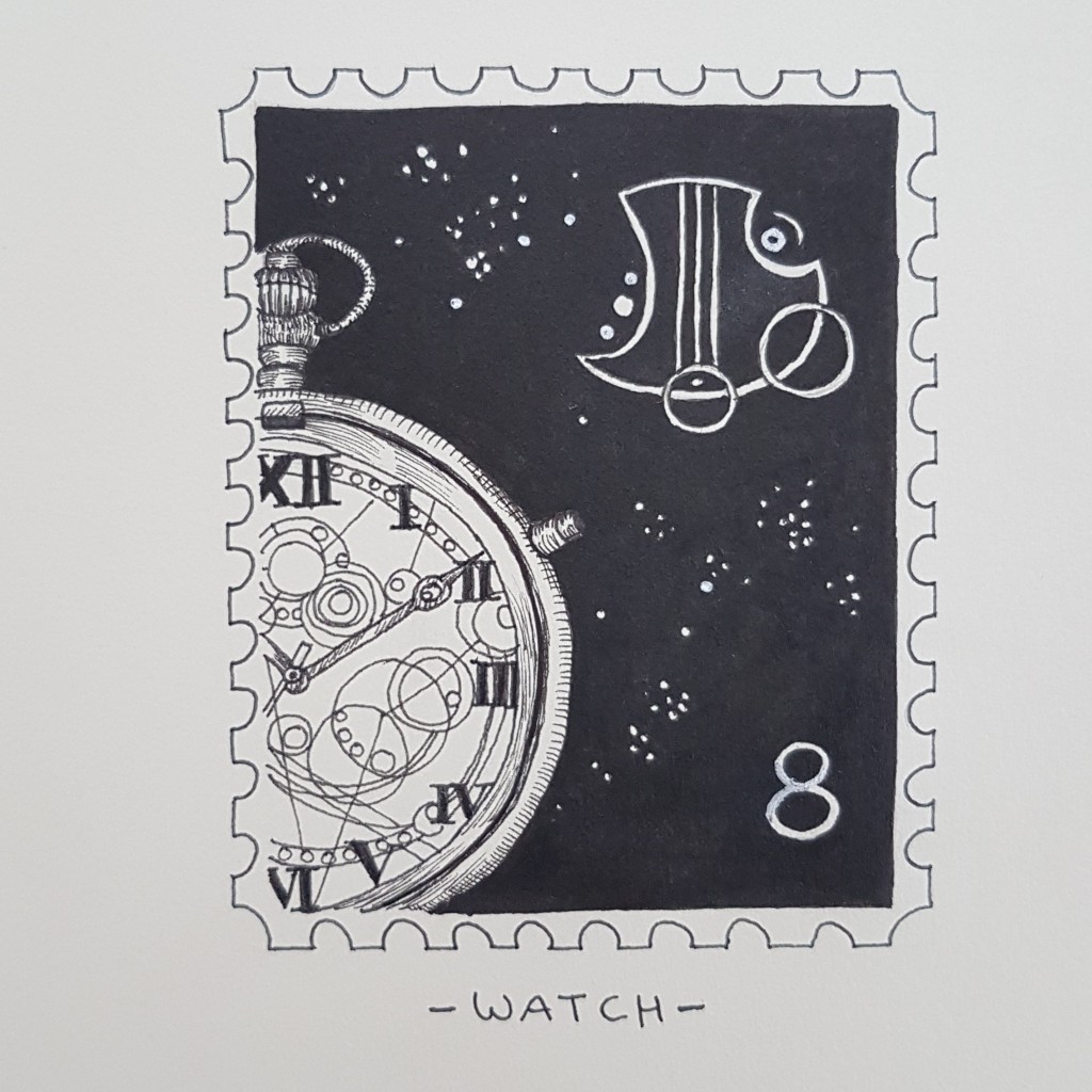 2.3x2.3 inch painting with gouache and ink, done in my mixed media sketchbook.
