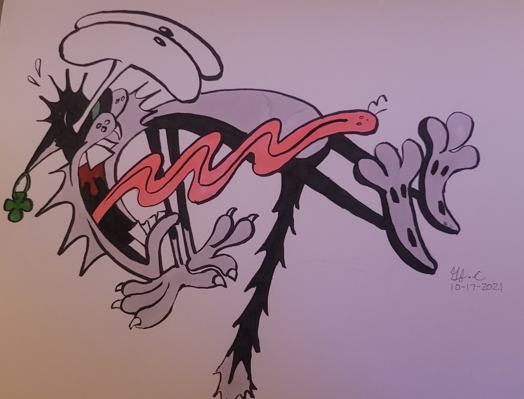 Looking at some of John R. Dilworth's works , I drew this "ugly" yet dainty dog. Wild colors, man!