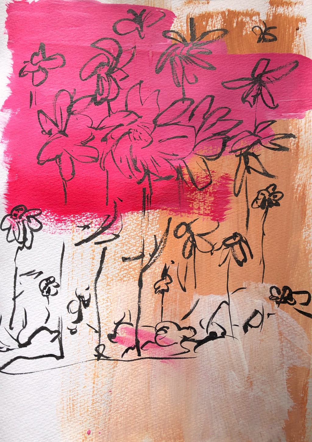 abstract, acrylic, doodling, flowers, illustration, pen and ink, pentel
