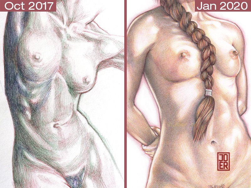 @Rayedrgn Basically, I use the 4 colour Bic click pen. Most office supply stores sell the one with the blue barrel and I order the one with the yellow ink from Amazon. I start with a rough sketch of the pose then refine it to the point it includes the muscle masses. Then I lay down the red first. As I have described in my other posts, I use very light pressure - just enough to make a fine mark. This pressure is different from the normal writing pressure I usually use to take notes. After I've basically drawn and shaded the entire image in red ink, I then use the green ink to go over the red and also add depth to the shadow areas. Finally, I go in with the yellow ink and sparingly go over everything. The yellow Bic ink is a bit harsh and too much coverage will give an unnatural look. Sometimes I revert to the cheap Hello Kitty 10 ink click pens and use that yellow - it's more forgiving. I almost never use black for the shadow areas - it flattens the volume. Usually, the combination of the red, green and yellow is enough to achieve nice dark brown. If I need to cool off the shadow areas more, I use the blue. As with all things, you have to practice and experiment with what works for your style of cross hatching. I had to fail numerous times before I could achieve a fairly acceptable look. Hope this helps.