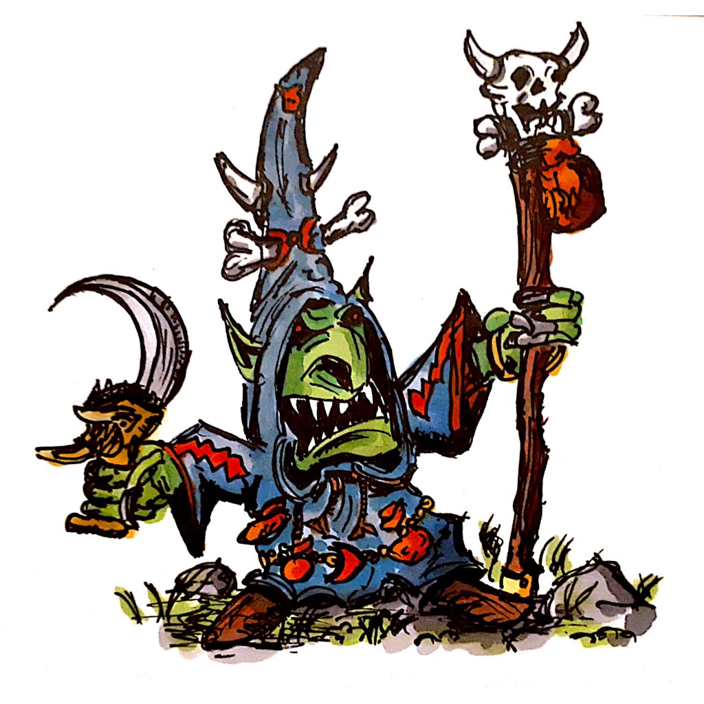 Gotcha! Yes, I have drawn a Warhammer Fantasy Goblin Shaman. A flashback to my childhood, where I spent hours and hours to paint hundreds of pewter figures for playing only a handful of games, but I loved it. Reference Picture: https://whc-cdn.games-workshop.com/wp-content/uploads/2019/01/MTOPreview-Jan20-NightGoblineShaman1fev.jpg
