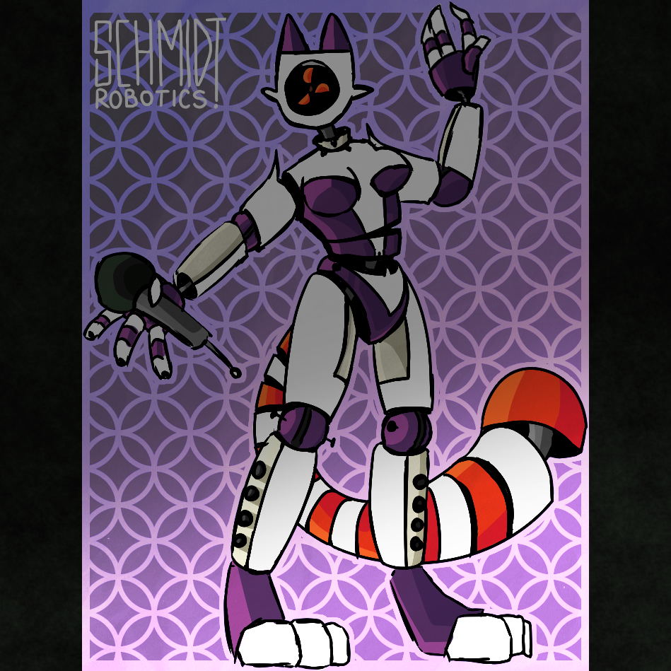This is my first post, so I'll keep things pretty basic. "Jester" is his name, but I like to refer to him as "The Ringmaster". He's my own creation, but he's inspired by the funtime animatronics from FNaF. This is also a stylized take on him. I'll post what he really looks like soon. He's comepletely sentient, and runs a pizzaria. There are shorter animatronics in the pizzaria, which he created, with the purpose to perform and entertain the people who come there. The shorter animatronics are not sentient, or possesed. At least, not yet. I'll also post pictures of these animatronics one day, hopefully in the next two days. I haven't really fleshed out what kind of story I'll make for him, but I'll use him eventually. Drawn with FireAlpaca.