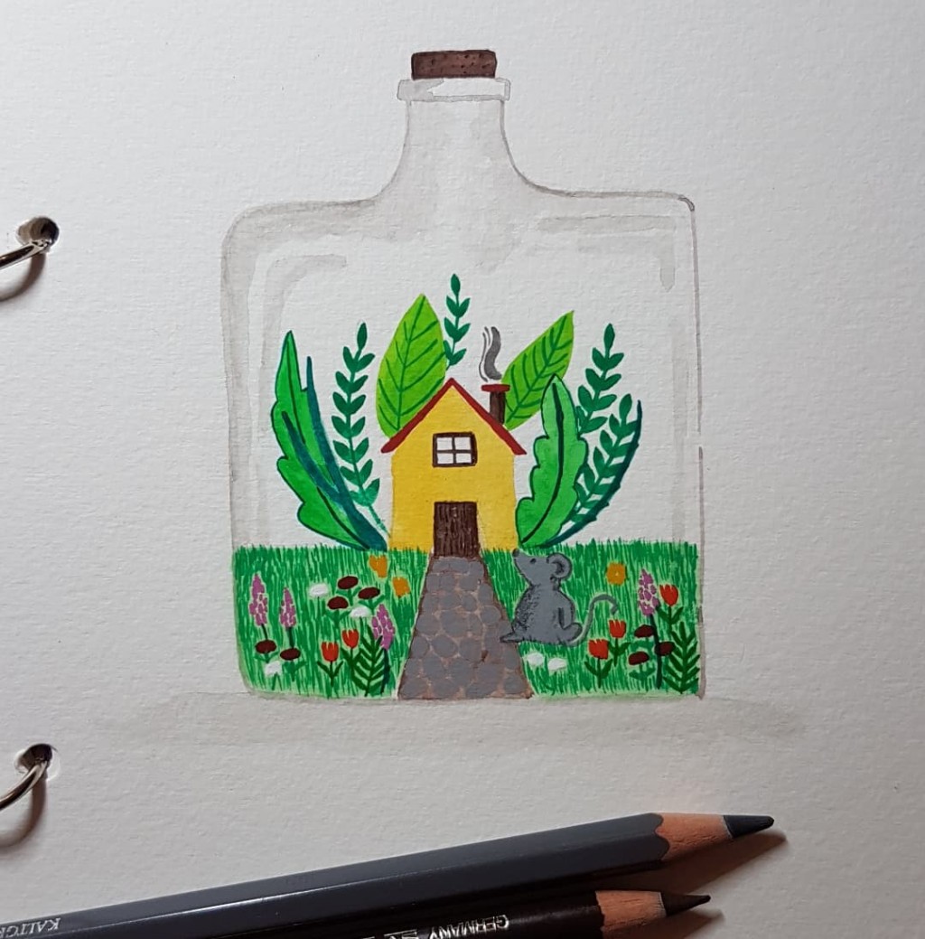 ...as my daughter says. Watercolour on watercolour paper. Mixing all the greens was real fun. I enjoyed every minute of creating this piece. And, of course, the first person I showed it to, found some fault with it...