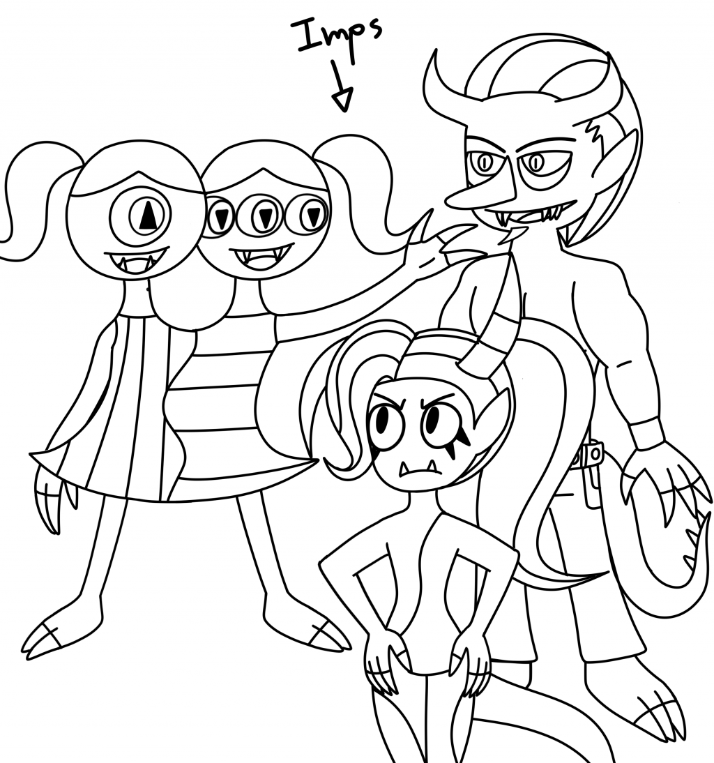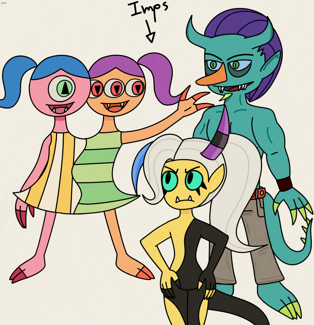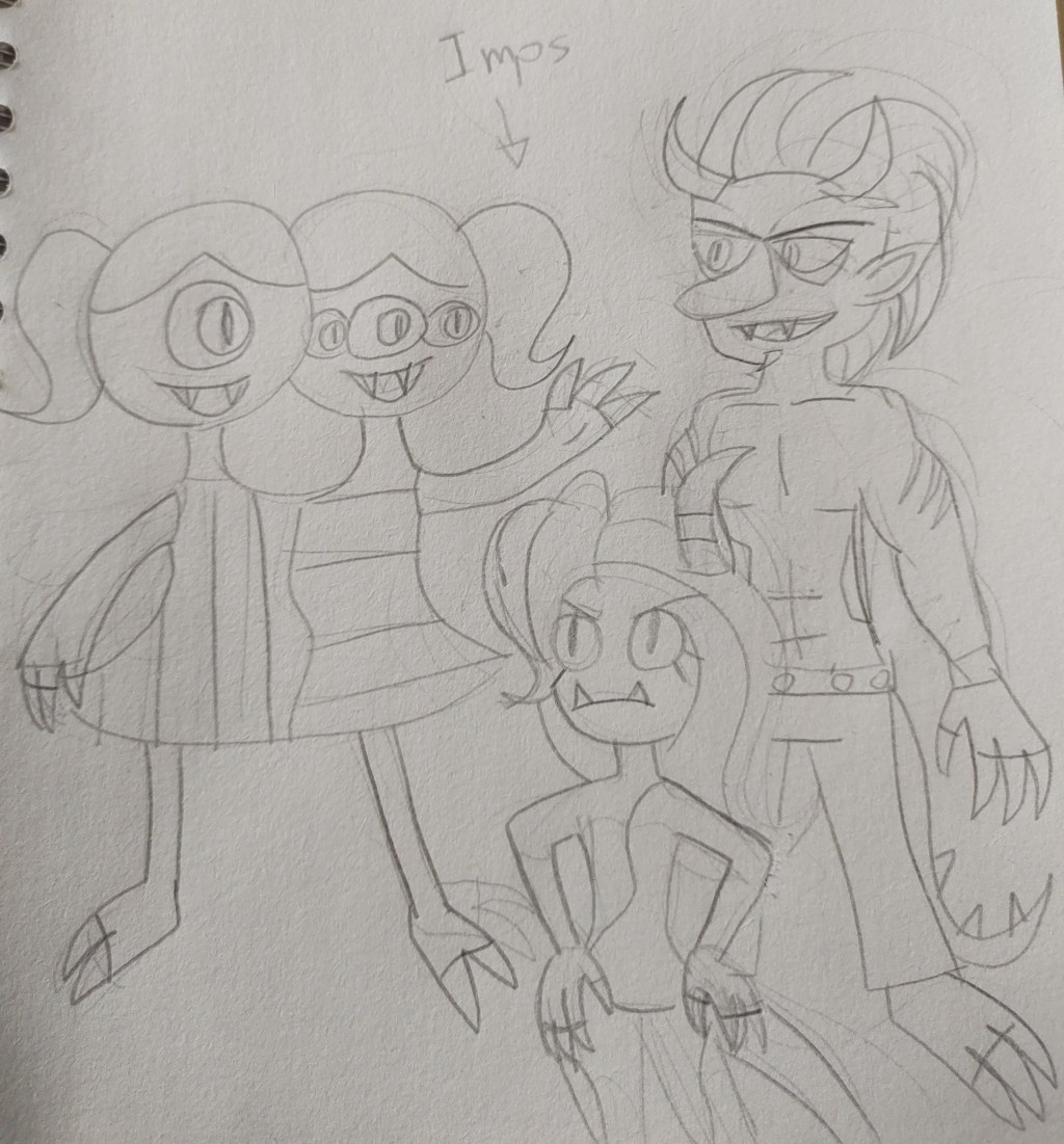 I drew Zilsti and Zizavy for the first time along with the other two in early-mid 2019 when I was 17 so the original drawing is really old,its from my original sketchbook I forgot about,i'll upload a few more drawings from there soon and redraw them.I changed the designs of the other imps especially Malicia (the yellow one)her hair being tied suits her the best