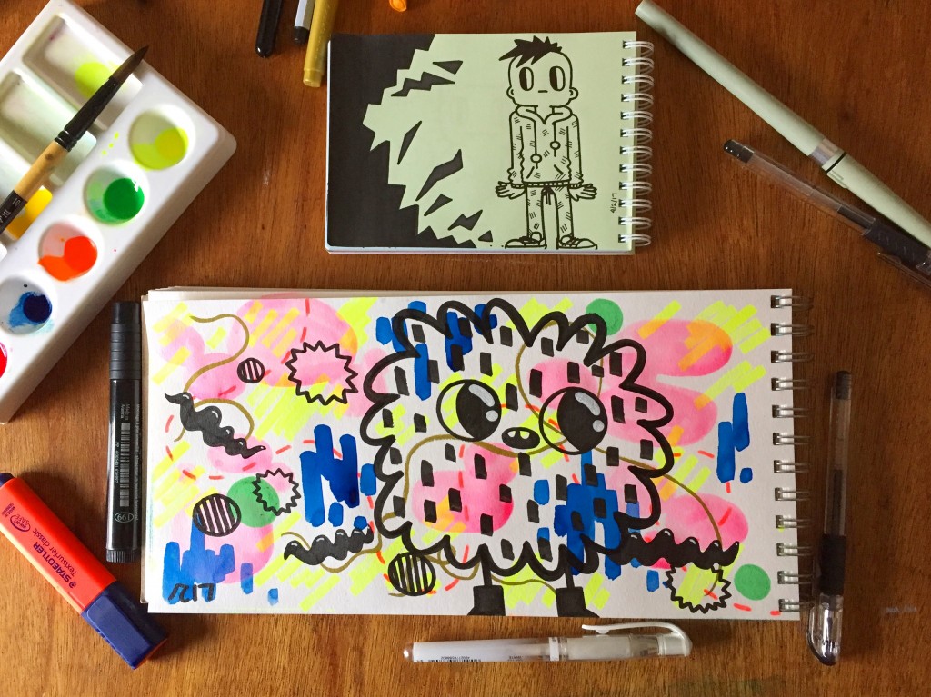 This mixed media piece is what I call a Monday to Monday piece. At the start of each week while working on other pieces I often times have left over paint or want to see how something works out before I put it on the main piece I’m working on so I use a piece of heavy weight paper to test all that on and just keep adding to it through out the week. It also gives me a space to just make whatever I want if I need a break from the main pieces I’m working on.