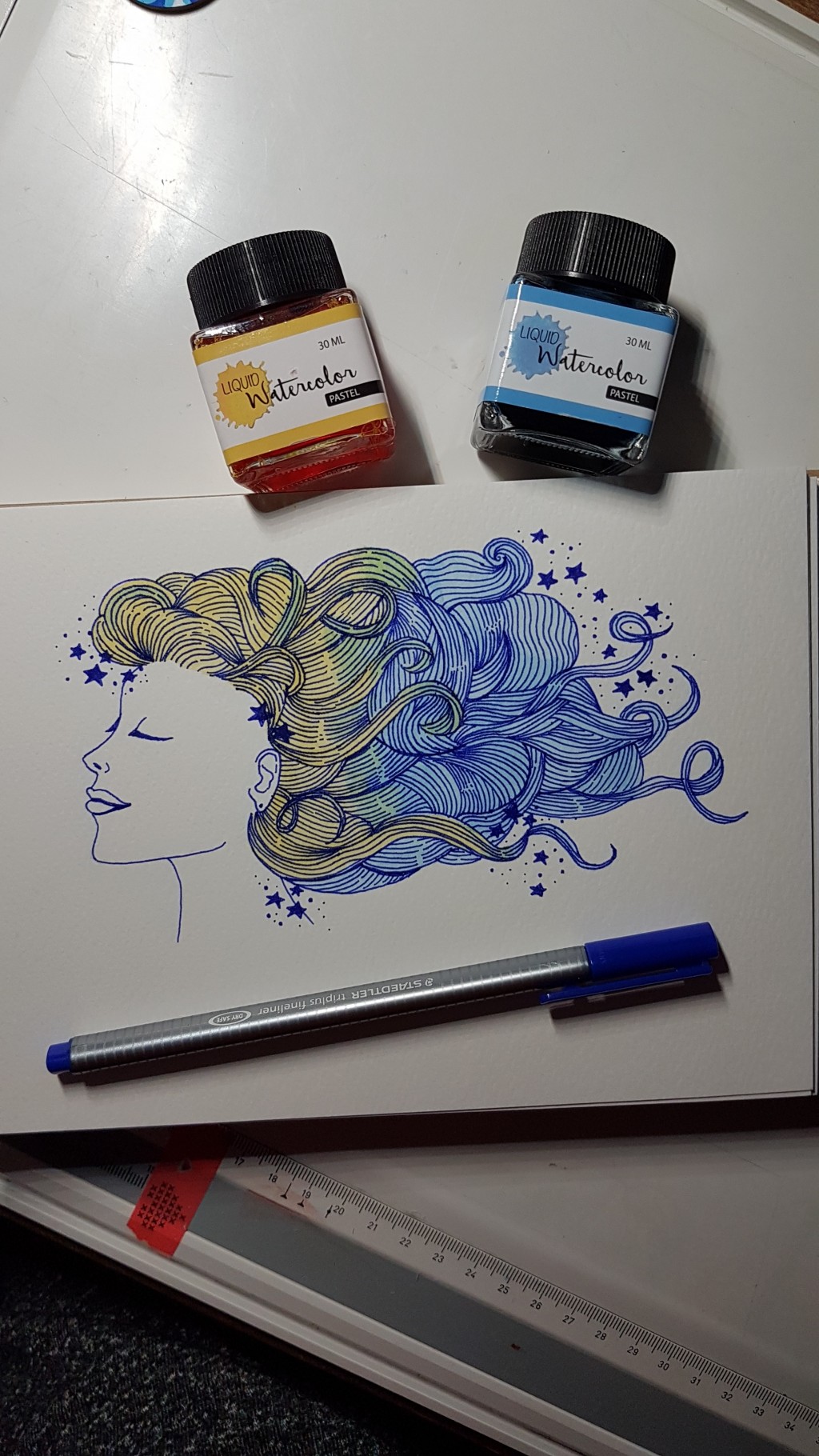 fineliner, illustration, traditional art, watercolors, watercolour