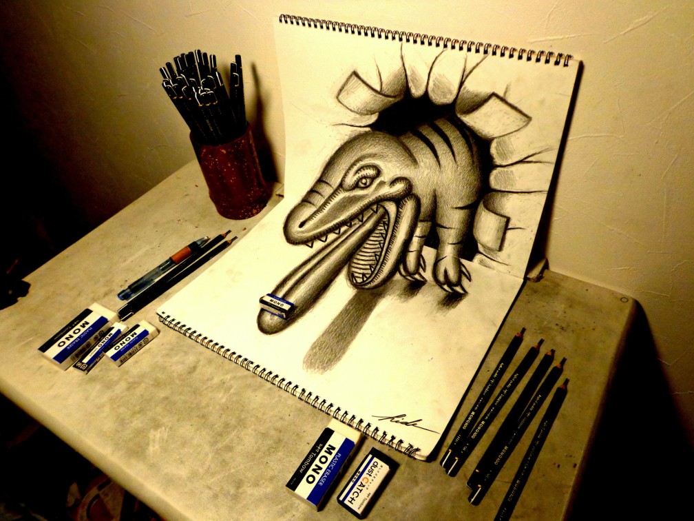 3D Drawing - Monster popping out of paper