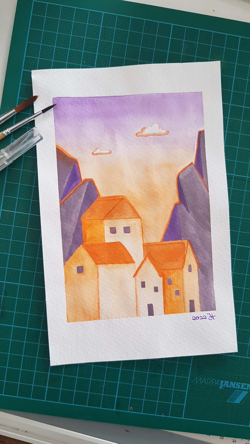 houses, illustration, painting, traditional art, watercolors, watercolour