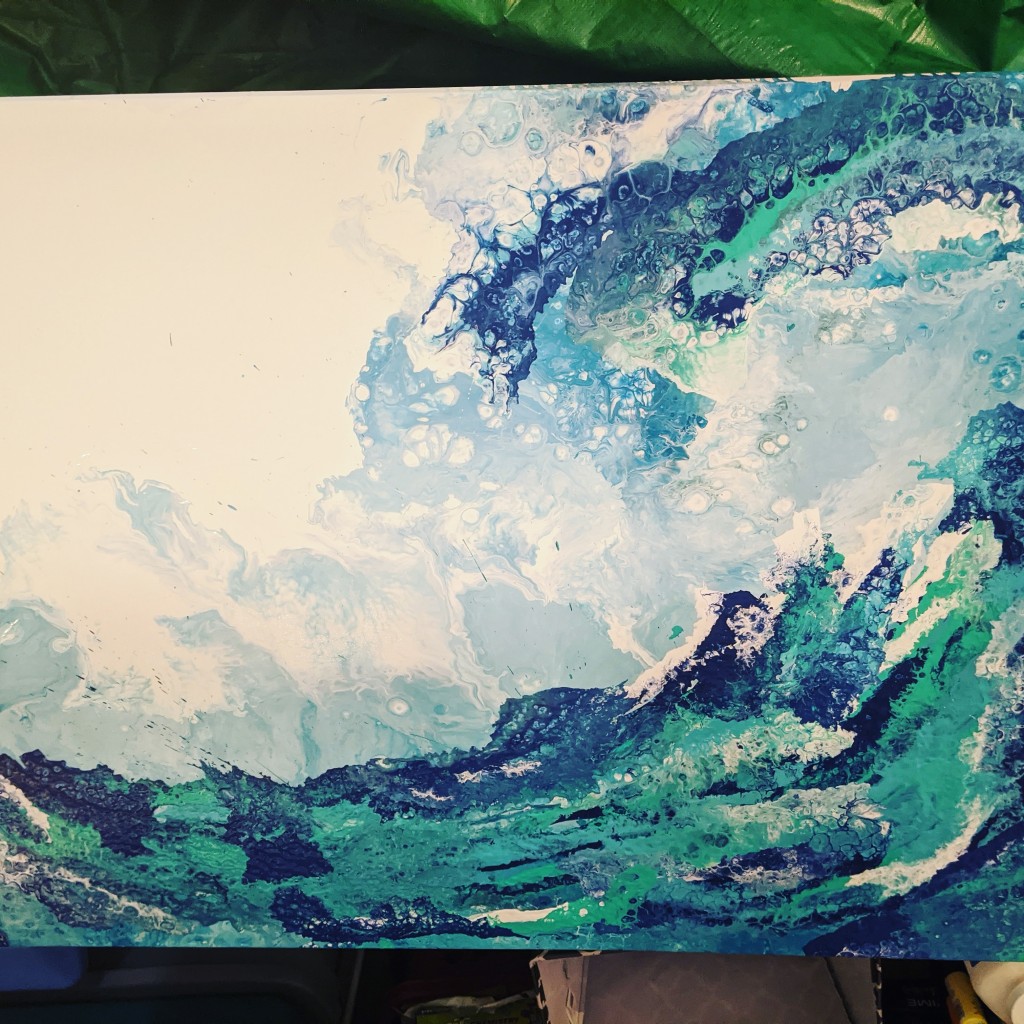 Large Ocean Wave, commission. Medium: Acrylic paint pouring.