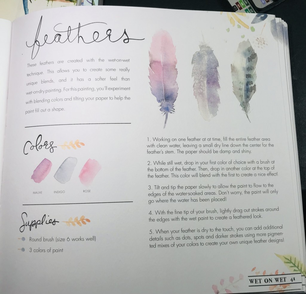 Copied from page 41 of Dana Fox’s in the Forest watercolor book. I messed up a little bit on the feathers when coloring them.