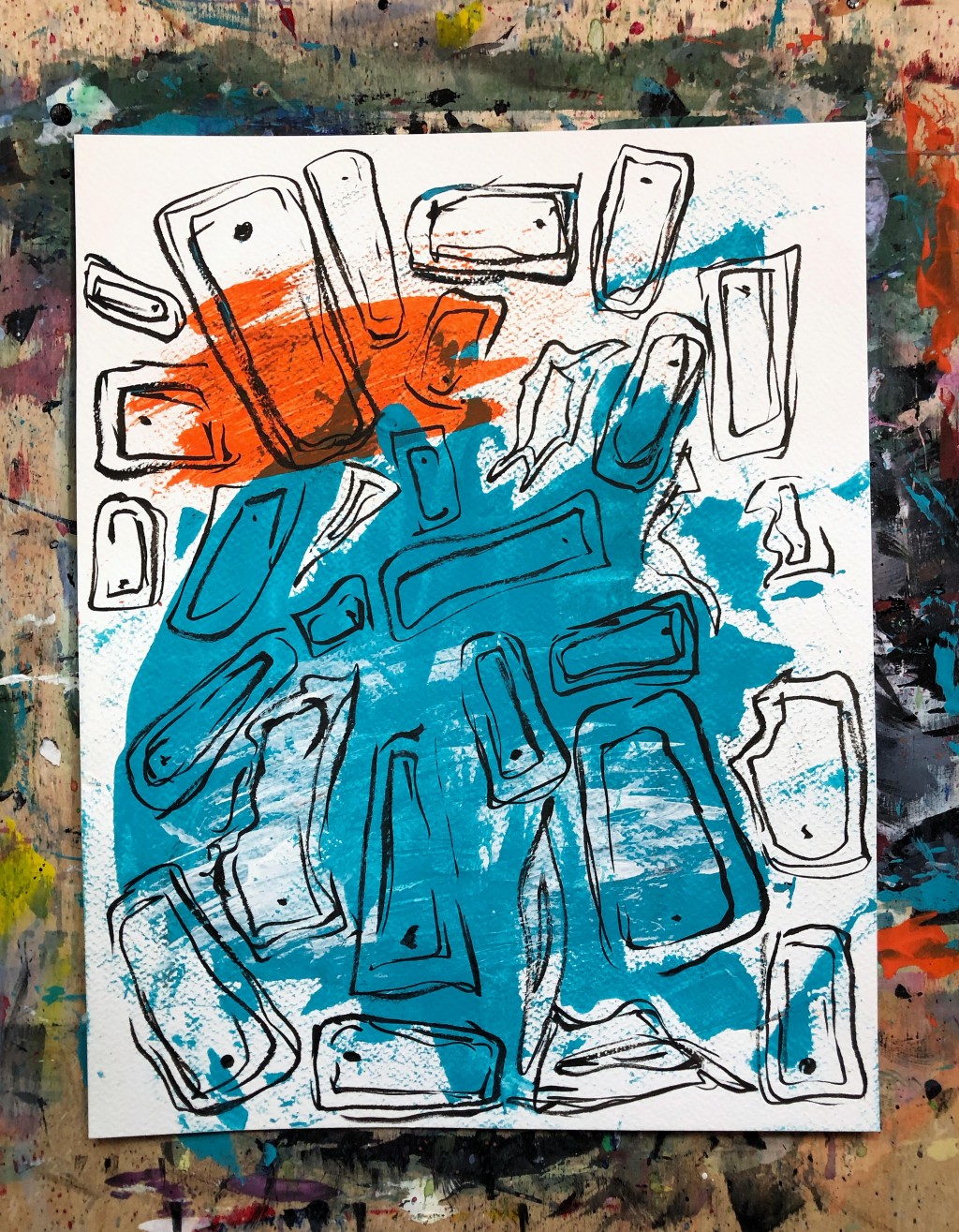 abstract, acrylic, brush pen, mixed media, painting