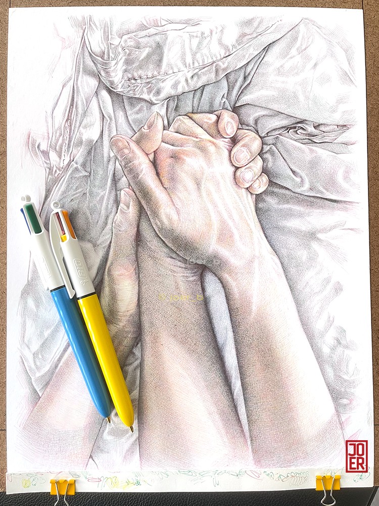 Recent commission: How do women move forward when doors are continually closing in front of them? Doors that were open in the past are now being closed by those who think that you should live your life the way they do even though your life situation is vastly different from theirs. 2022, 13” x 19” Ballpoint Pen on Paper, Digital. Model: AmyM