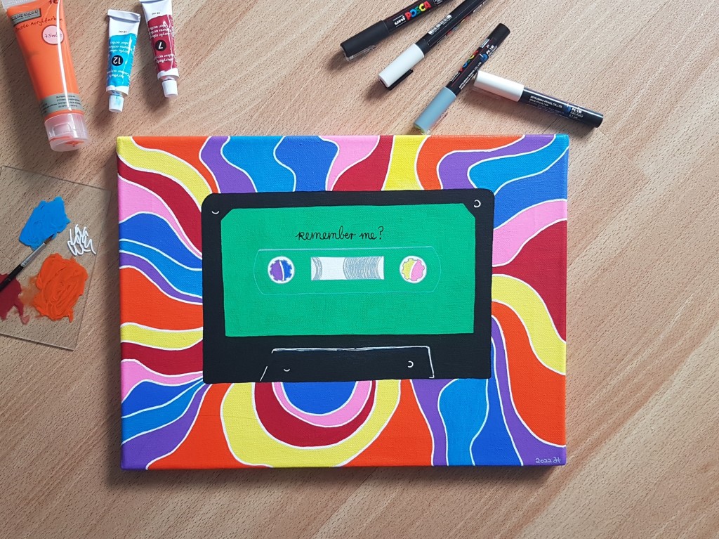 Posca pens and acrylic paint on canvas. You can read the history of this painting on Instagram or on my blog www.mincastamtam.de