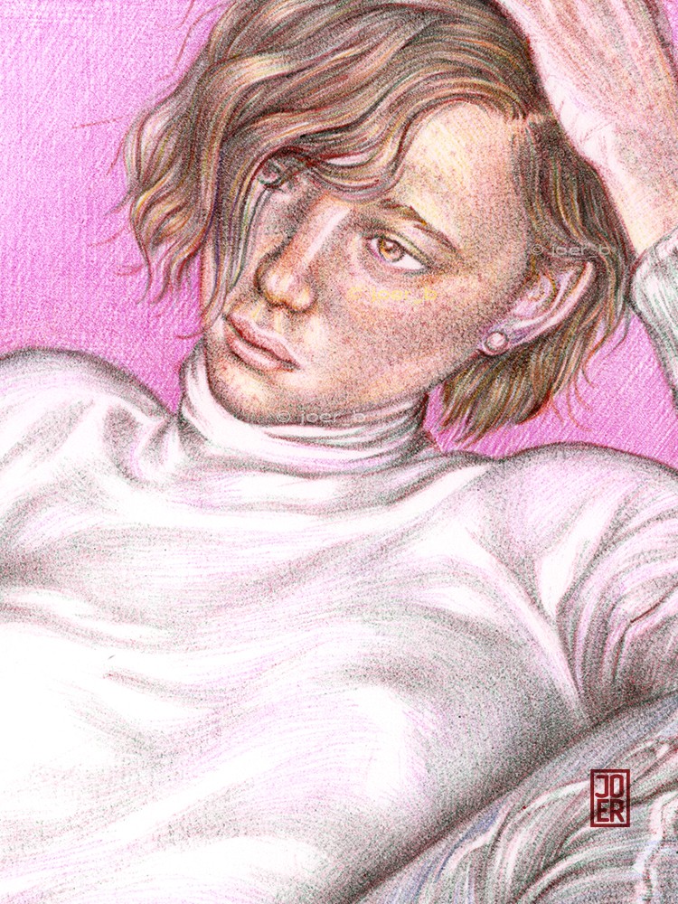 Another drawing of Meadhbh in my sketchbook. 2023, Double Page Spread-5” x 8,” Ballpoint Pen on Moleskine Sketchbook.