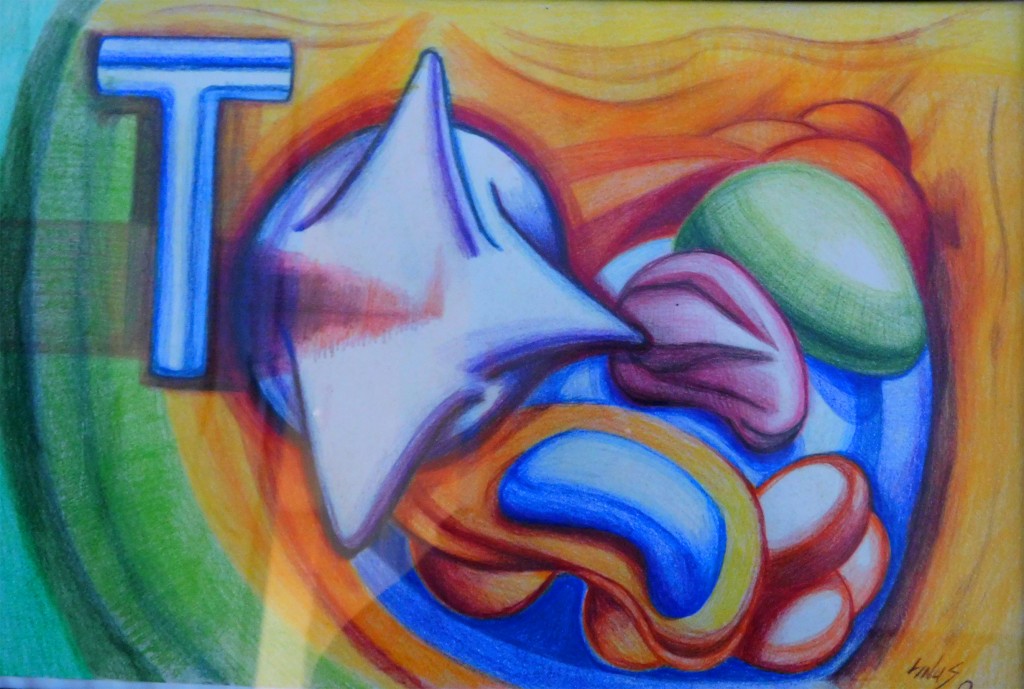 T is a colored pencil work. A bit based on the Covid concerns.