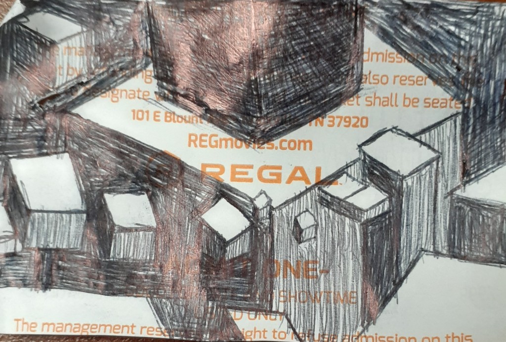 I got so bored that I drew this on the back of my movie ticket today.