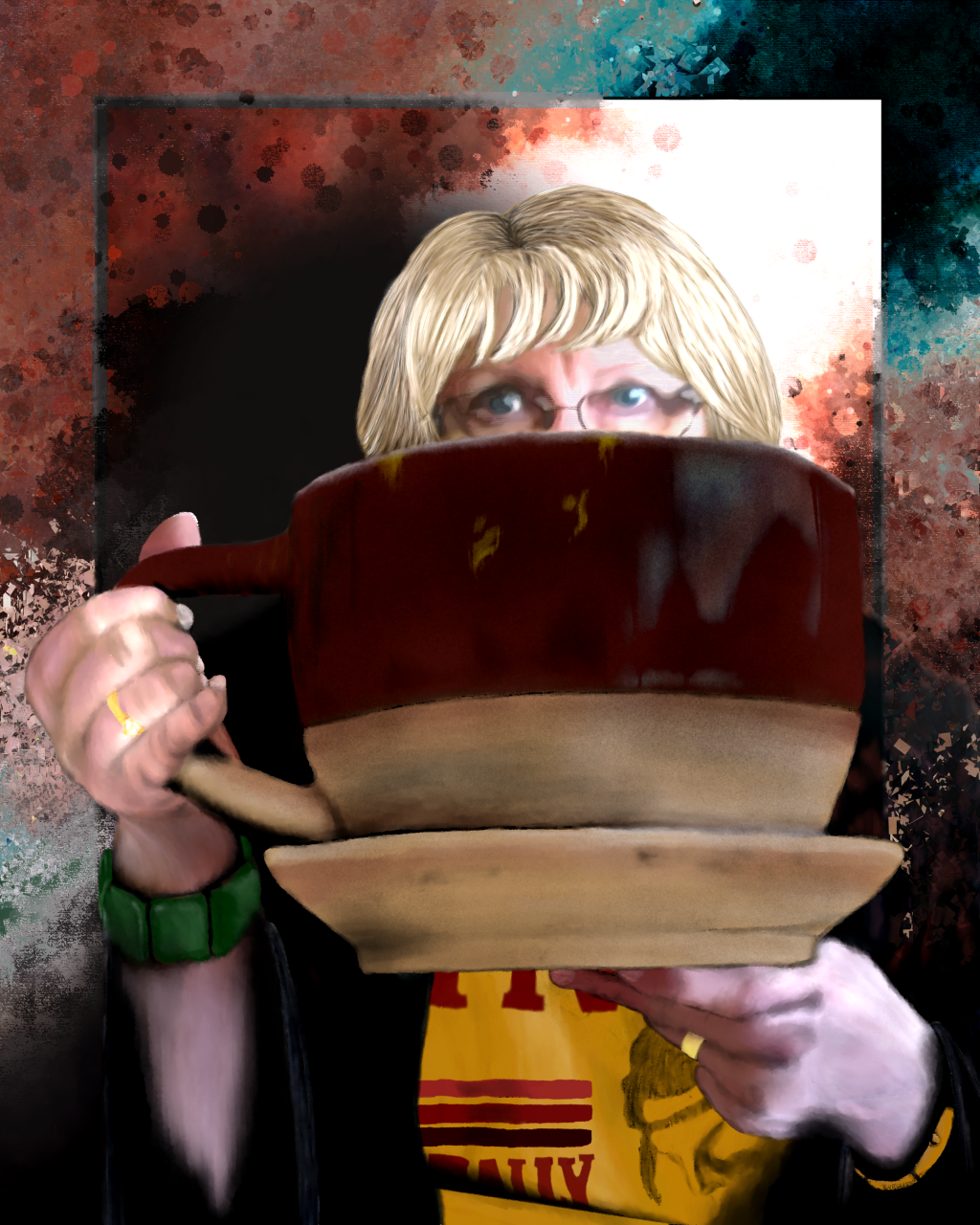 I finally finished this piece for my Aunt. It was based on a goofy picture she sent me. I am pleased with the depth I achieved and can see improvements. I am not most experienced with portraits or anatomy/characters.