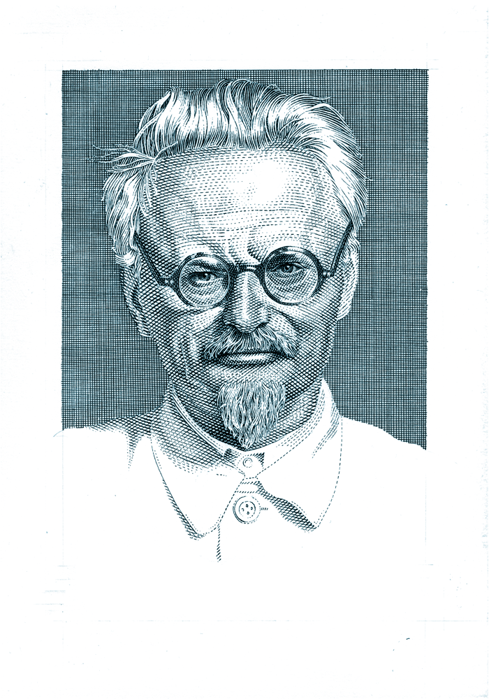 Pen & ink portrait of Leon Trotsky (Leib Bronstein).