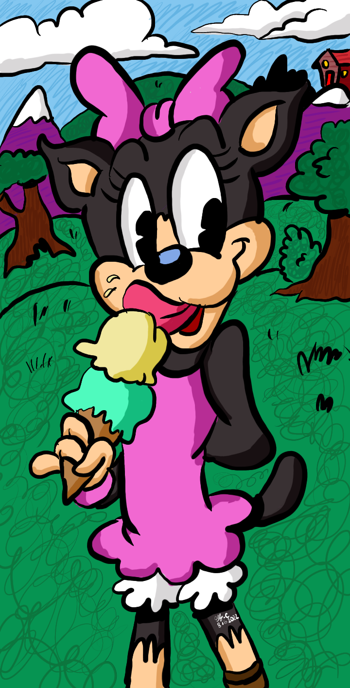 My character Peggy Bark enjoying an ice cream cone.