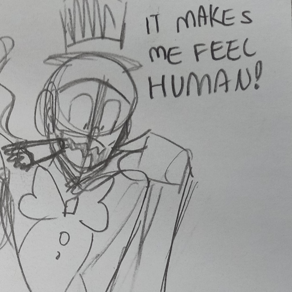 Jester really doesn't like giving his creations proper faces. This one doesn't even have a mouth. It's just fan.