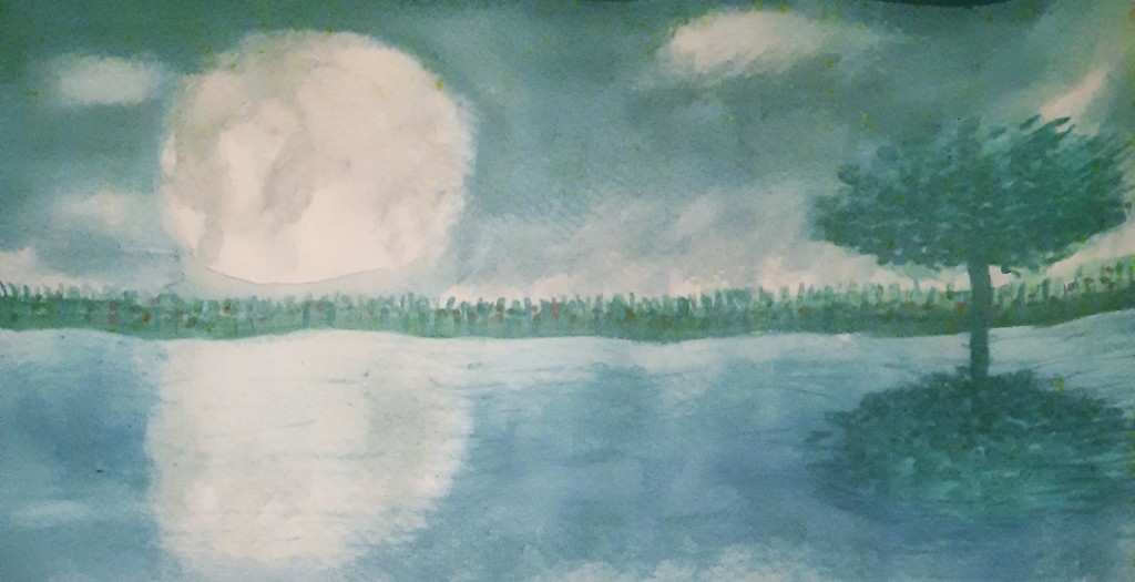 I'm starting to learn how to paint with watercolors. This is my first picture. I wish I did the moon better, but I'm happy with how it came out otherwise.