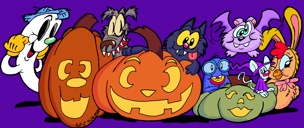 Tried my Poscas on a sheet of toned tan paper in my sketchbook, and doodled up this cute rubber hose like bat character enjoying a nice Halloween night while being carried by 3 spooky/funny jack -0-lantern balloons.