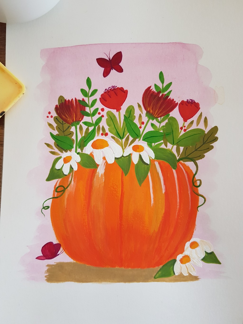 autumn, flora fauna, flowers, gouache, painting, traditional art