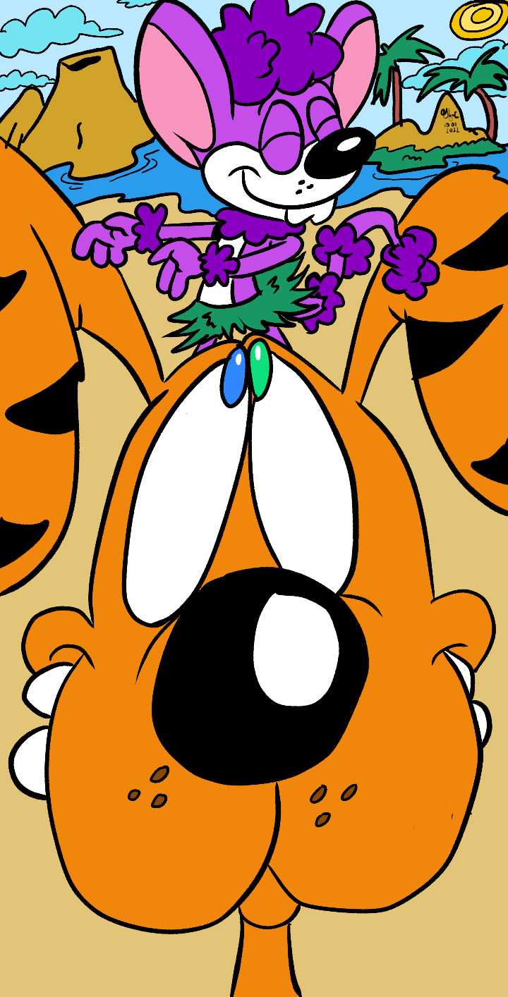 My character Kixxy Kittles has a major crush on Furrball from "Tiny Toon Adventures". The tall pink cat behind them isn't the Pink Panther. He's an old character I created from "Toon Town Rewritten" named Felix Gumdrop.