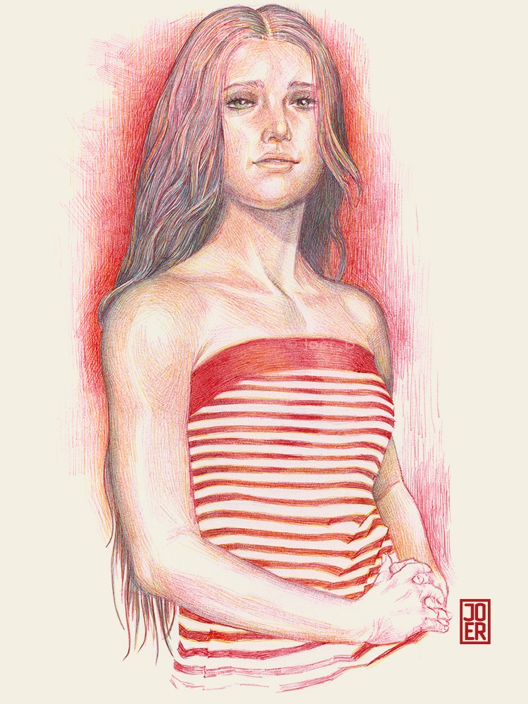 More sketchbook work of Meadhbh. Decided to use the sepia Micron pens as my primary tool, with the Bic ballpoint playing a supporting role.