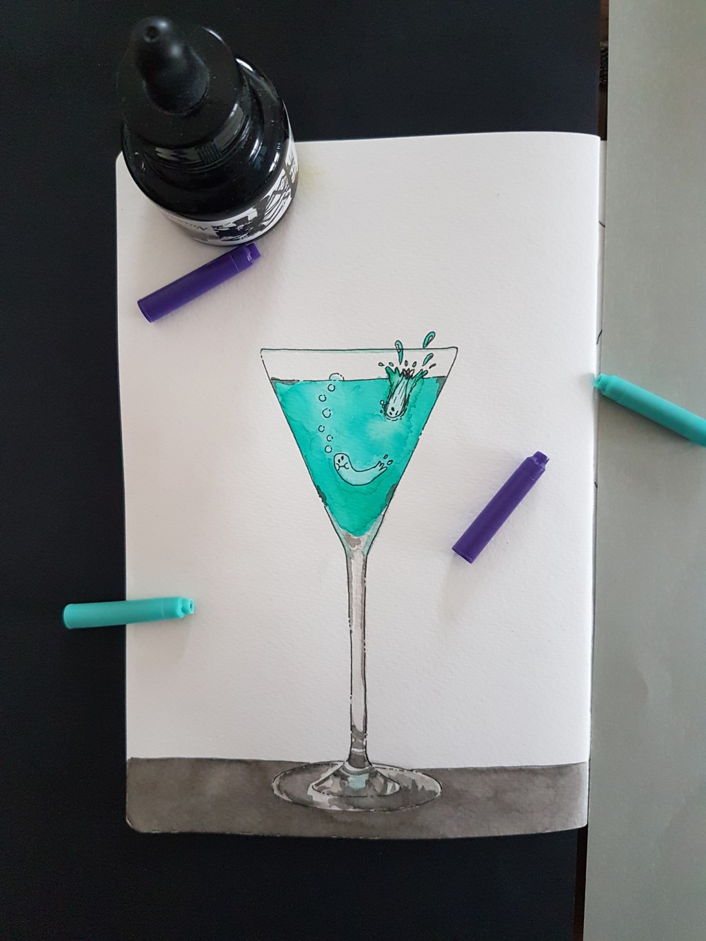 done with fountain pen ink and marker on an index card A5