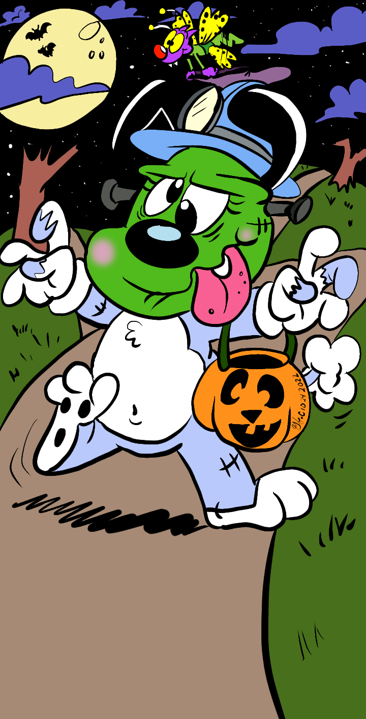Mooksie and Batsy go out and about for some candy. Good thing Mooksie brought some light.