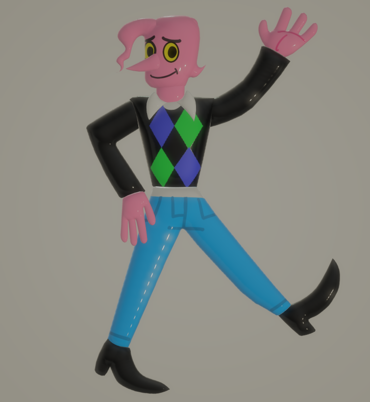 I have lost interest in Paint 3D however I have made many 3D ish drawings of my new characters from early October.Al wears a black knit argyle sweater and he wears a button down long sleeve shirt under.he wears blue dress pants and wears black dress shoes.I will share more information about Al once I get started on a reference sheet for him.