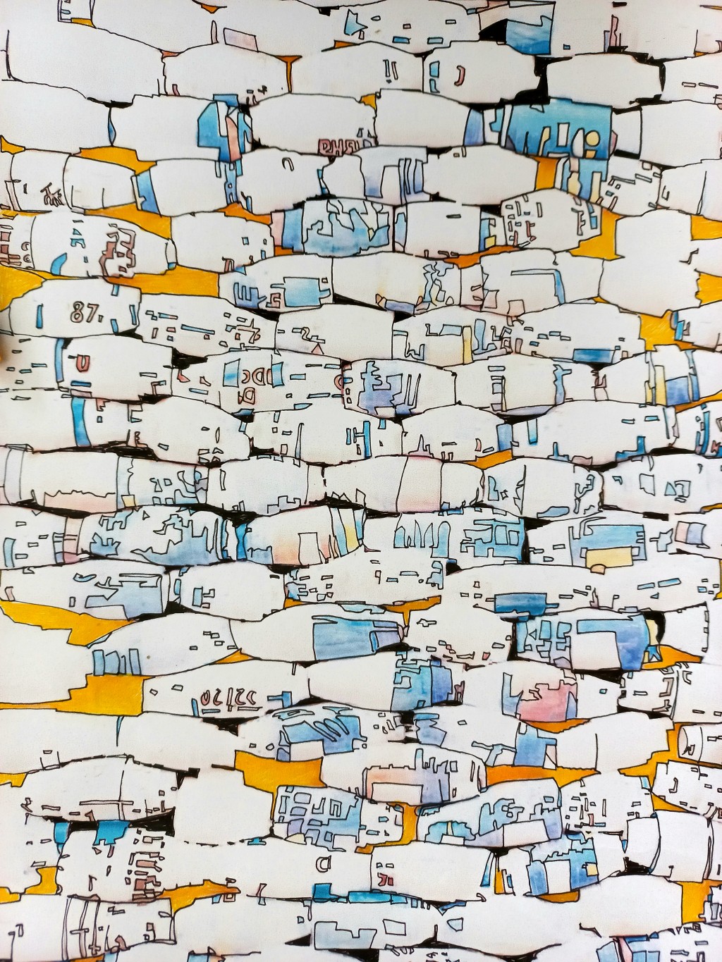 colored pencil, paper, paper beads, pen